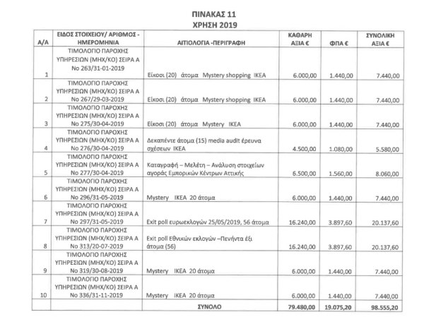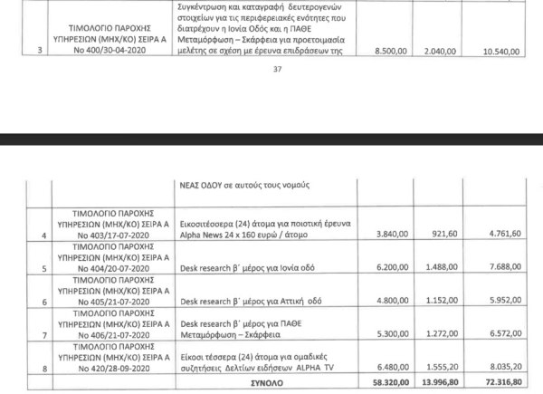 Σύμφωνα με αυτό λοιπόν η Marc φέρεται να έδωσε ως υπεργολάβος σειρά ερευνών που είχε αναλάβει η ίδια στην εταιρεία «Ιονία Τεχνική». Μεταξύ άλλων στα τιμολόγια διαβάζουμε έρευνες για «συμμετοχή σε ποιοτική έρευνα 29 ατόμων για την μαργαρίνη…», «έρευνα φυσικού αερίου Θεσσαλονίκης (ποιοτική και ποσοτική- 16 άτομα (sic))», «ερωτηματολόγια έρευνας ΑΕΚ», «exit poll ευρωεκλογών 2019», «έρευνα για λογαριασμό ΙΚΕΑ», «exit poll εθνικών εκλογών 2019-56 άτομα» κ.α.