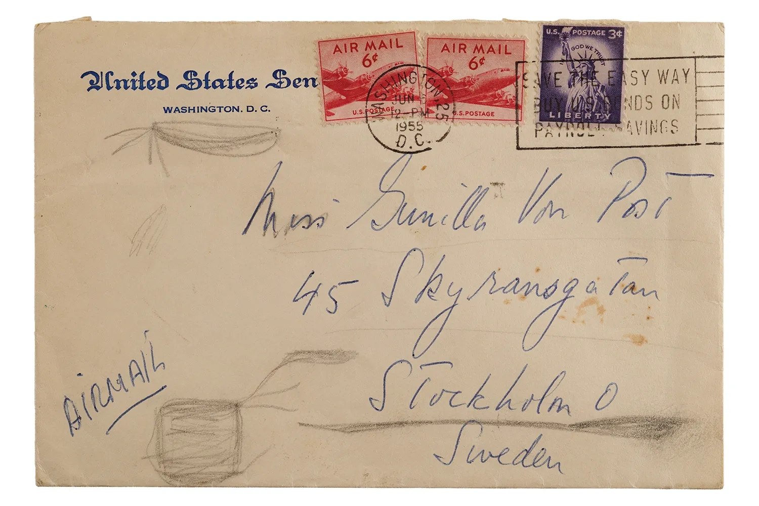 Η διπλής όψης επιστολή, γραμμένη σε επιστολόχαρτο της Γερουσίας των Ηνωμένων Πολιτειών και με σφραγίδα ταχυδρομείου του Ιουνίου 1955, περιλαμβάνει τη φράση «Έρχομαι στη Στοκχόλμη» και ζητά από τη Φον Ποστ να «μου γράψεις αμέσως, καθώς θα αναχωρήσω για την Ευρώπη σε 2 εβδομάδες», με την επιστολή να υπογράφεται με ένα απλό «Τζακ».