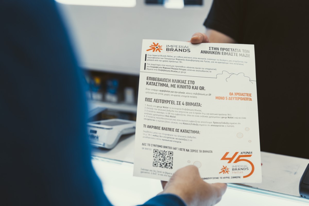 Όπως σημειώνει ο Πρόεδρος και Διευθύνων Σύμβουλος της Imperial Brands Hellas, Νίκος Νικηφορίδης: «Παραμένουμε απόλυτα προσανατολισμένοι στη διαμόρφωση ενός υπεύθυνου οικοσυστήματος, όπου η προστασία των ανηλίκων αποτελεί αδιαπραγμάτευτη προτεραιότητα. Με συστηματική συνεργασία με την Πολιτεία και τους Συνεργάτες μας, διασφαλίζουμε, ότι κάθε Σημείο Πώλησης μπορεί να λειτουργεί με συνέπεια, διαφάνεια και υψηλά πρότυπα συμμόρφωσης.».