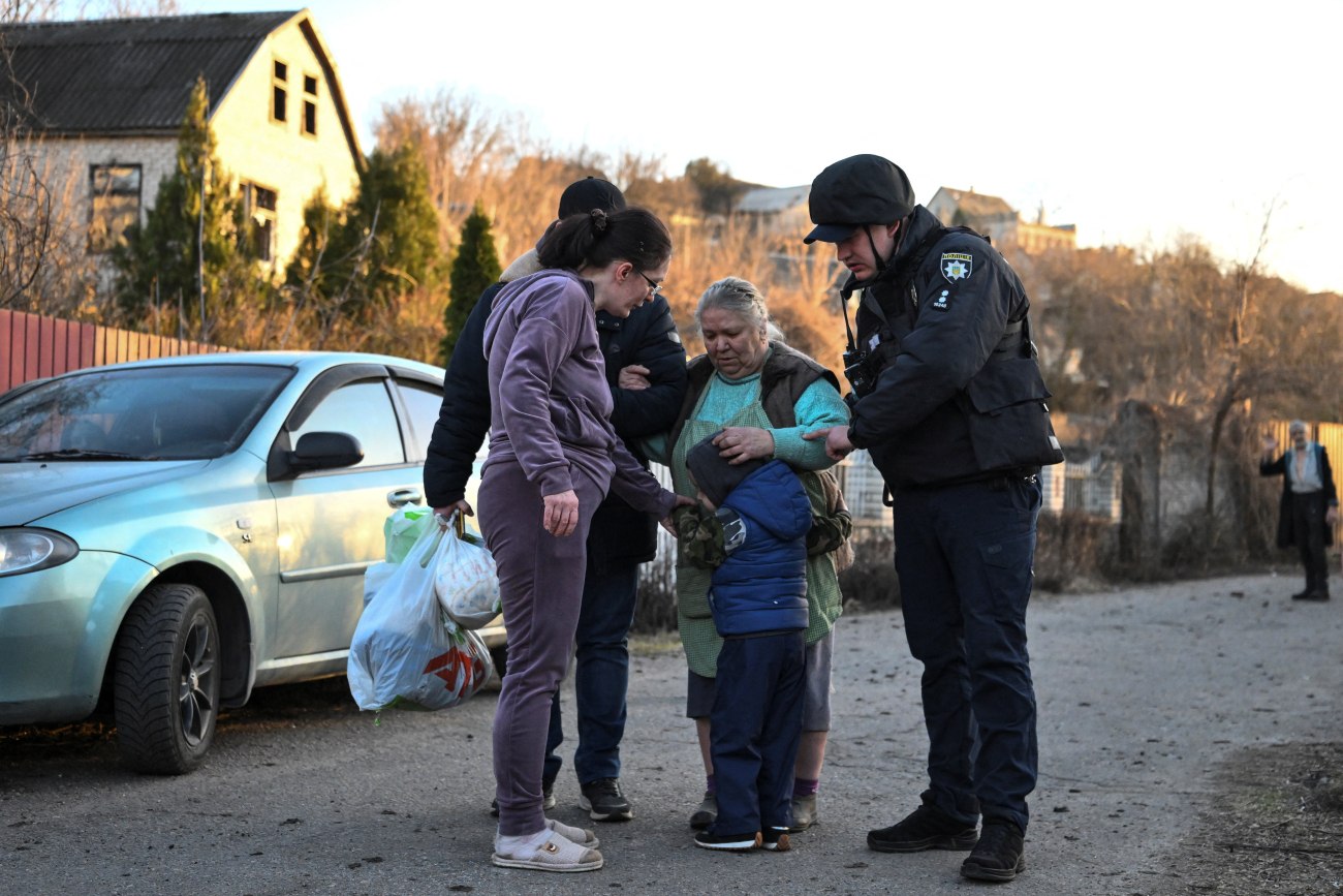 Ένας αστυνομικός βοηθά κατοίκους στο σημείο ρωσικής αεροπορικής επιδρομής στη Ζαπορίζια της Ουκρανίας, 11 Μαρτίου 2026. REUTERS/Stringer.