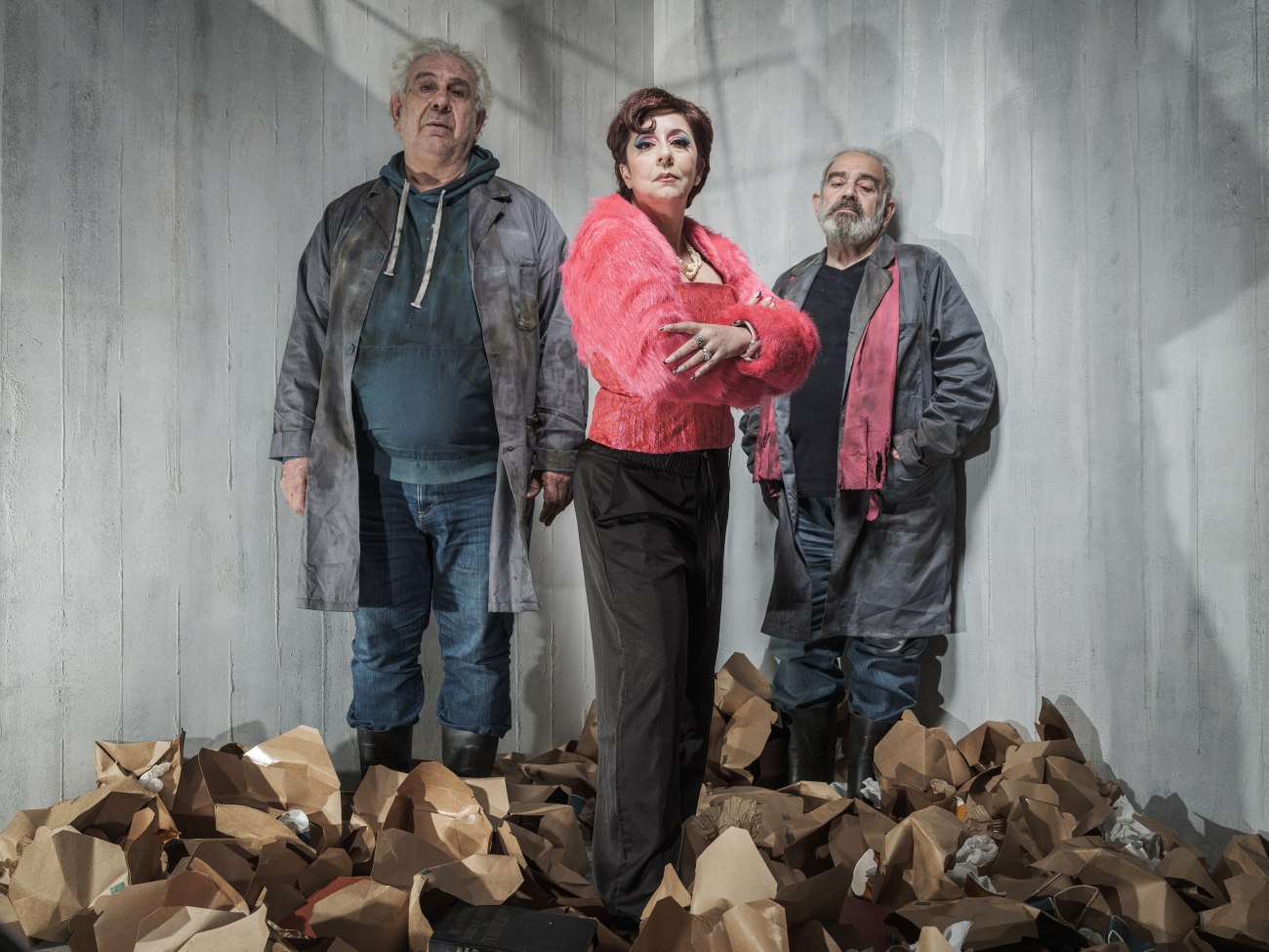 Επί σκηνής συναντιούνται οι Ερρίκος Λίτσης, Κώστας Καζάκας και Άνδρη Θεοδότου, σε μια παράσταση που – με όπλο το χιούμορ, την τρυφερότητα και την αλήθεια – στρέφει το βλέμμα κάτω από την επιφάνεια, εκεί όπου καταλήγουν όσα ο «επάνω» κόσμος θεωρεί άχρηστα.