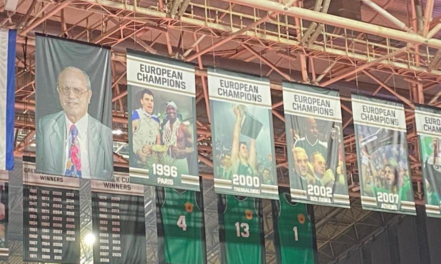 Ο Παναθηναϊκός ανέβασε στον ουρανό του «T-Center» το νέο λάβαρο για την κατάκτηση της Euroleague του 2000. Στη θέση του προηγούμενο, με τον Μποντιρόγκα, μπήκε νέο λάβαρο για το 2ο ευρωπαϊκό τρόπαιο των πράσινων με τη μορφή πλέον του Φραγκίσκου Αλβέρτη, ο οποίος σήκωσε το βαρύτιμο τρόπαιο στη Θεσσαλονίκη.