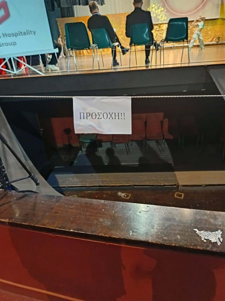 Το κενό βρίσκεται δίπλα από την σκηνή η οποία ωστόσο όπως καταγγέλλουν οι γονείς είχε καλυφθεί απλά με ένα πανί.