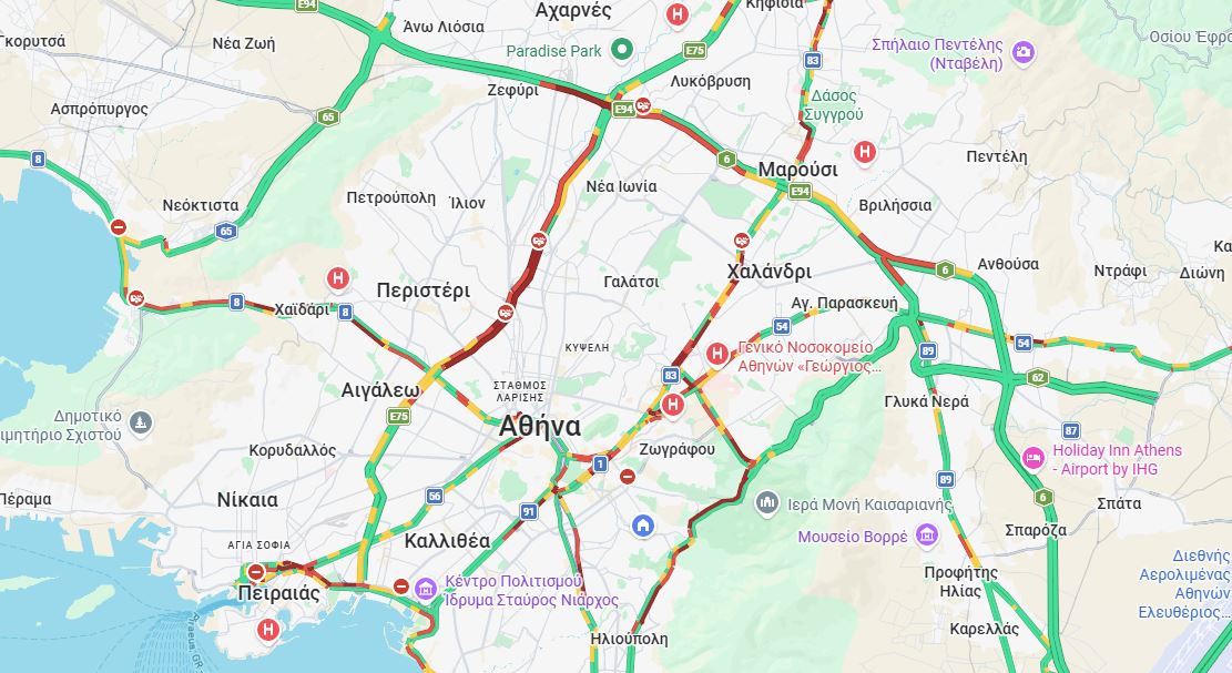 Ίδια εικόνα παρουσιάζουν και οι υπόλοιποι κεντρικοί δρόμοι στην Αττική.
