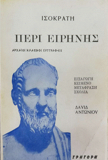 *Στη φωτογραφία του παρόντος άρθρου, ο «Περί Ειρήνης» λόγος του Ισοκράτη (μετάφραση – σχόλια Δαυίδ Αντωνίου, εκδόσεις «Γρηγόρη», 1977).