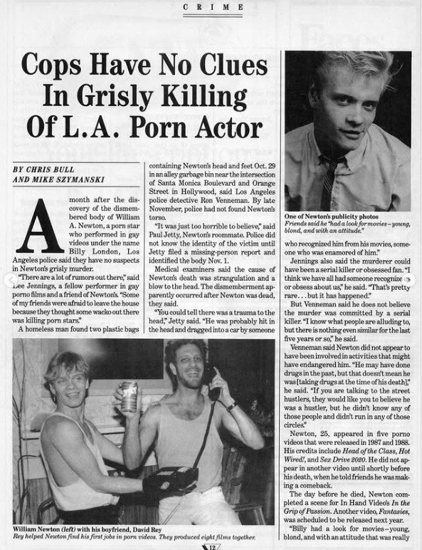 Ο γκέι porn star Γουίλιαμ Νιούτον, γνωστός στον χώρο της ψυχαγωγίας ενηλίκων ως Μπίλι Λόντον, δολοφονήθηκε άγρια το 1990, λίγο μετά την ολοκλήρωση της τελευταίας του ταινίας.