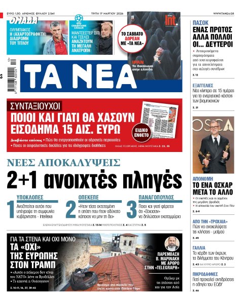 - Στα «ΝΕΑ» της Τρίτης: 2+1 ανοιχτές πληγές