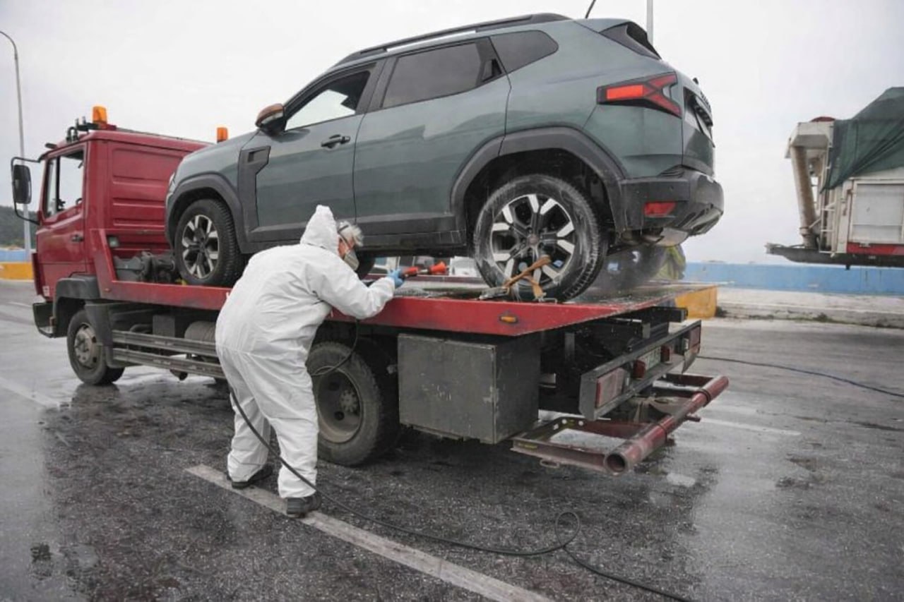 *Κεντρική φωτογραφία: Απολύμανση σε όχημα που εξήλθε από πλοίο στη Μυτιλήνη | Φωτογραφία: www.stonisi.gr