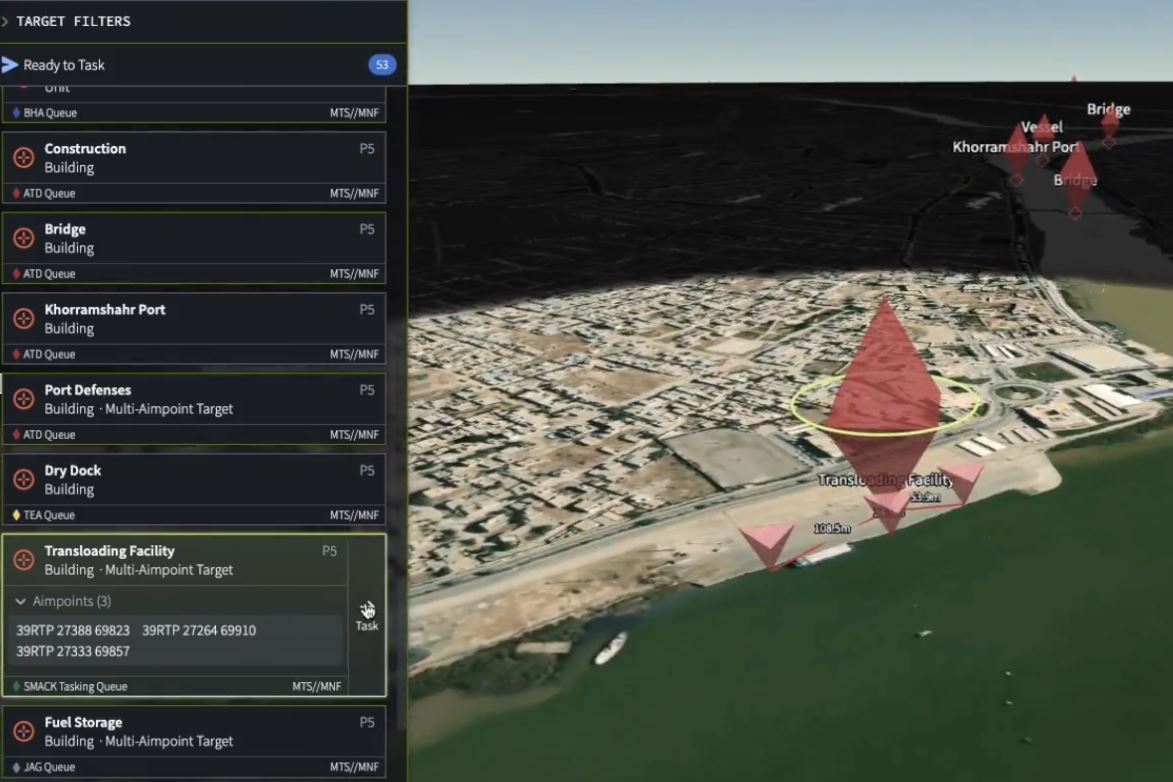 Η βασική τεχνολογία αυτοματοποίησης του Πενταγώνου για τον προσδιορισμό στόχων είναι το «Maven Smart System» της Palantir, το οποίο επιτρέπει στο στρατιωτικό προσωπικό να σχεδιάζει επιθέσεις με κλικ, σύρσιμο και απόθεση μέσα σε ένα μόνο πρόγραμμα, συμπυκνώνοντας ώρες ή ημέρες εργασίας σε λίγα λεπτά.