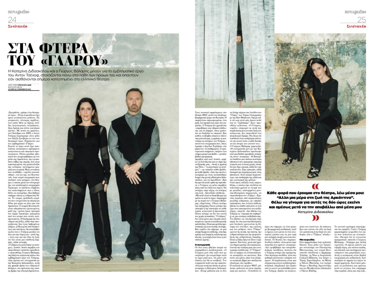 Στο θέατρο, η διαχρονική δύναμη του έργου «Ο Γλάρος» του Αντον Τσέχοφ ζωντανεύει μέσα από τις σκέψεις της Κατερίνα Διδασκάλου και του Γιώργου Βάλαρη, οι οποίοι αναμετρώνται με τα πάθη των ηρώων και τοποθετούνται απέναντι στην έννοια του «κατεστημένου» στο ελληνικό θέατρο σήμερα.