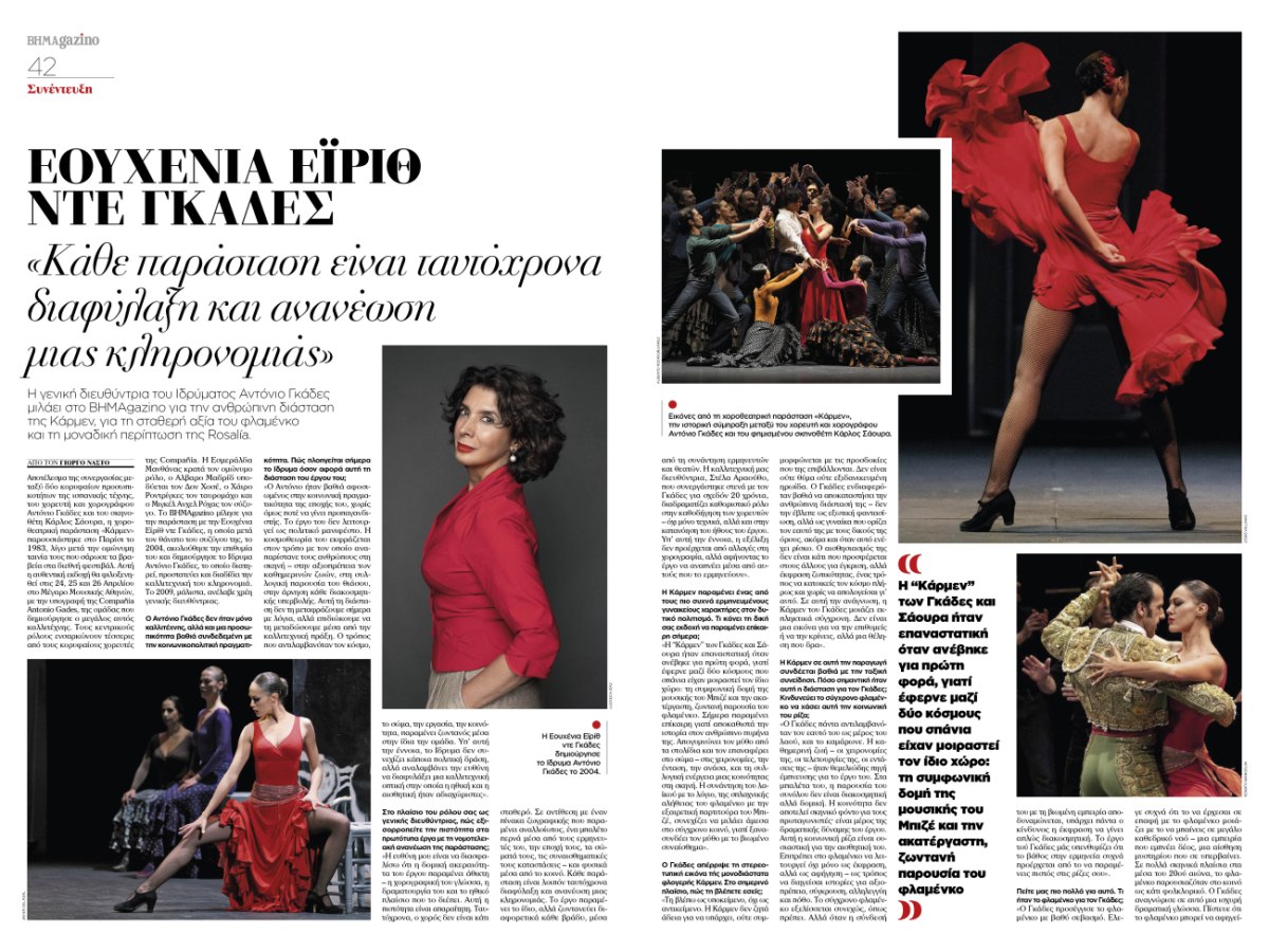Ιδιαίτερο ενδιαφέρον παρουσιάζει η συνέντευξη της Εουχένια Εϊρίθ ντε Γκάδες, που μιλά για τη ζωντανή κληρονομιά του φλαμένκο και τη διαχρονική γοητεία της «Κάρμεν», αναφερόμενη παράλληλα στη μοναδική καλλιτεχνική περίπτωση της Rosalía.
