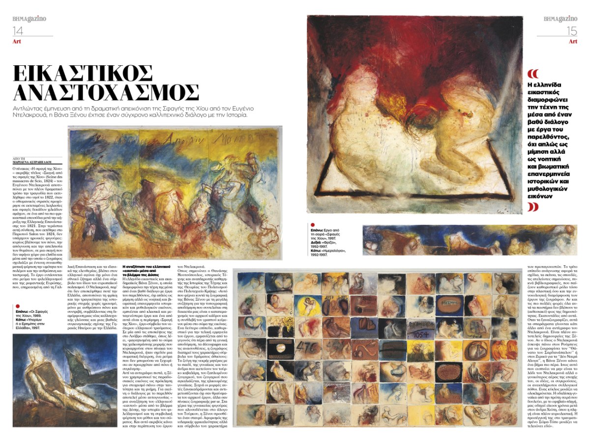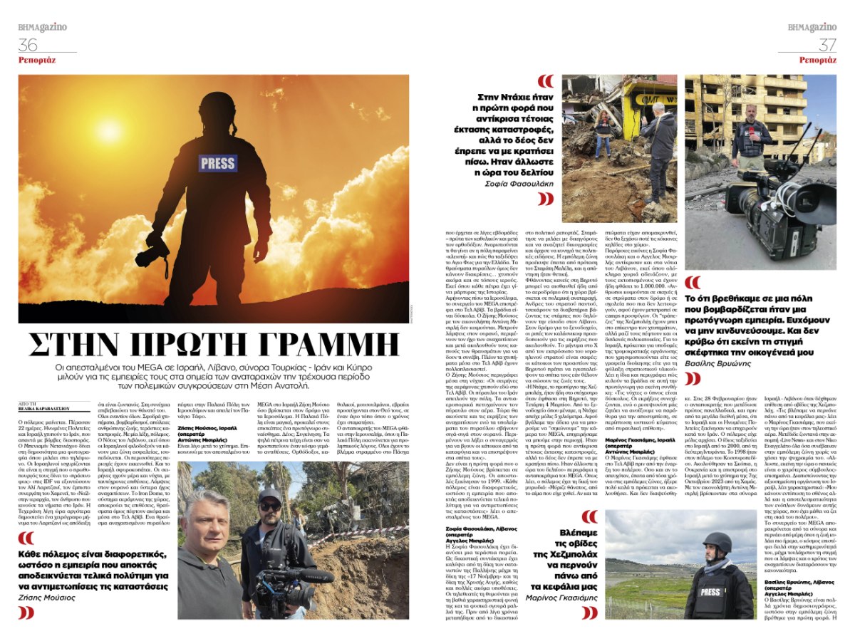Στις εικαστικές σελίδες, η Βάνα Ξένου συνομιλεί με την Ιστορία, αντλώντας έμπνευση από τη «Η Σφαγή της Χίου» του Ευγένιος Ντελακρουά, ενώ στην πρώτη γραμμή της επικαιρότητας, οι απεσταλμένοι του MEGA μεταφέρουν τις εμπειρίες τους από τις εστίες έντασης στη Μέση Ανατολή, σκιαγραφώντας την πραγματικότητα των σύγχρονων συγκρούσεων.