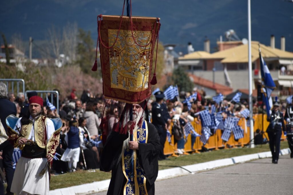 Ιδιαίτερη βαρύτητα και συμβολισμό στον φετινό εορτασμό προσέδωσε η παρουσία του ιστορικού Λαβάρου της Ελληνικής Επανάστασης από την Αγία Λαύρα των Καλαβρύτων