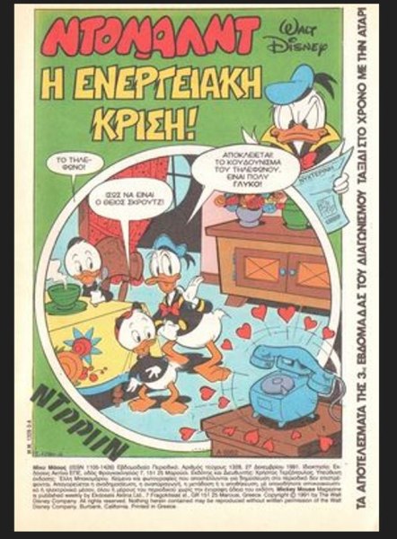 Η ιστορία «Ο Ντόναλντ και η Ενεργειακή Κρίση», από παλιό τεύχος του Μίκυ Μάους, στον απόηχο της πετρελαϊκής κρίσης του 1979-80, έχει ανατριχιαστικές ομοιότητες με το σήμερα.