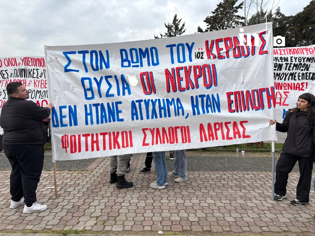Το πανό των φοιτητικών συλλόγων Λάρισας