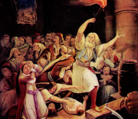 Θα μας πουν ακόμα οι ρήτορες της ημέρας ότι το Εικοσιένα συμβολίζει και ένα άλλο ζευγάρι εννοιών: τη Λεβεντιά και την Αυτοθυσία. Άστραψε και πάλι τότε η ελληνική Λεβεντιά και αγιάστηκε με τον πόνο της Θυσίας. Παράδειγμα: οι νέες Θερμοπύλες — το Μεσολόγγι. Για τον γενναίο, όταν κλείνονται όλοι οι άλλοι δρόμοι, μια υπάρχει πλέον έντιμη διέξοδος: το ολοκαύτωμα. Εκεί οδηγεί η άγρυπνη συνείδηση του χρέους.