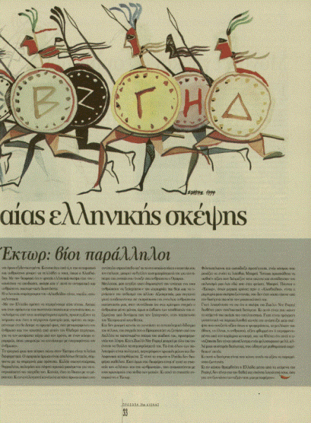 *Κείμενο του συγγραφέα και δημοσιογράφου Τάκη Θεοδωρόπουλου, που έφερε τον τίτλο «Αλκιβιάδης – Έκτωρ: βίοι παράλληλοι» και είχε δημοσιευτεί στην εφημερίδα «Τα Νέα» το Σαββατοκύριακο 19-20 Ιουνίου 1999.