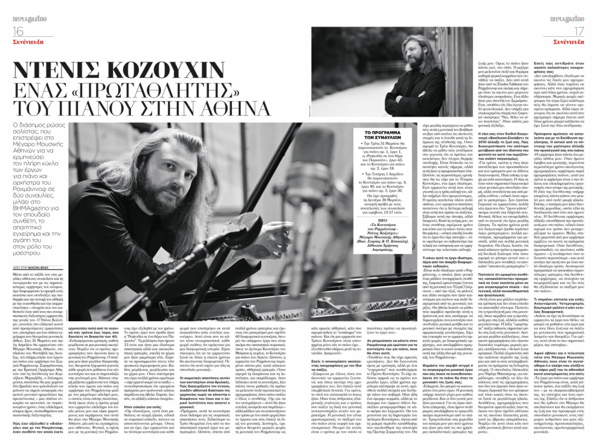 Στον χώρο της κλασικής μουσικής, ο διεθνώς αναγνωρισμένος πιανίστας Denis Kozhukhin επιστρέφει στην Αθήνα για να παρουσιάσει τον πλήρη κύκλο των έργων για πιάνο και ορχήστρα του Sergei Rachmaninoff, μιλώντας για την πρόκληση του εγχειρήματος αλλά και για την ιδιαίτερη σχέση του με τον ρόλο του μαέστρου.