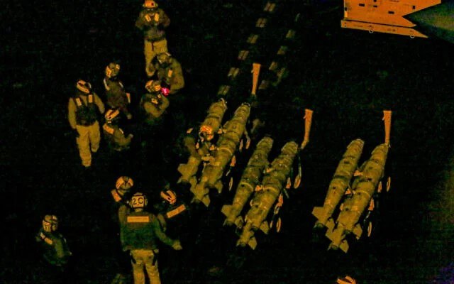 Αυτή η εικόνα που παρέχεται από το Κεντρικό Στρατηγείο των ΗΠΑ δείχνει ναύτες του Πολεμικού Ναυτικού να μετακινούν πυρομαχικά στο κατάστρωμα πτήσεων του USS Abraham Lincoln (CVN 72) για την υποστήριξη της «Επιχείρησης Epic Fury» την 1η Μαρτίου 2026. (Πολεμικό Ναυτικό των ΗΠΑ μέσω AP)