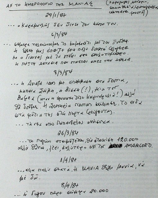 Μία από τις τελευταίες καταγραφές στα συνοπτικά ημερολόγια του Γιώργου Πανουσόπουλου από την πορεία της Μανίας, λίγες ημέρες πριν το άνοιγμα της ταινίας, κλείνει με τη φράση «ΔΕΝ ΞΑΝΑΚΑΝΩ ΤΑΙΝΙΑ ΕΤΣΙ» – η μόνη φράση που γράφεται με κεφαλαία γράμματα.