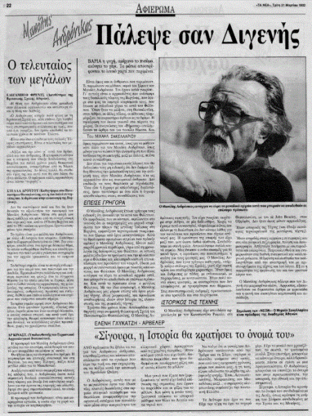 *Κείμενο του Μιχαήλ Σακελλαρίου (1912-2014), που έφερε τον τίτλο «Πάλεψε σαν Διγενής» και είχε δημοσιευτεί στην εφημερίδα «Τα Νέα» την Τρίτη 31 Μαρτίου 1992, την επομένη του θανάτου του Μανόλη Ανδρόνικου.
