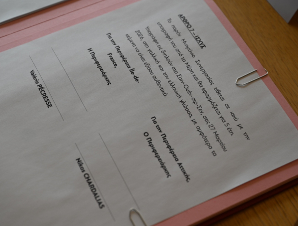 Στην τελετή υπογραφής του Μνημονίου Συνεργασίας παραβρέθηκαν επίσης η Ειδική Γραμματέας της Περιφέρειας Αττικής, Έλενα Ράπτη, ο Πρόεδρος της Επιτροπής Διεθνών Υποθέσεων της Île-de-France, Vincent Bedu και η Πρέσβειρα – Ειδική Εντεταλμένη για τις Διπλωματικές Σχέσεις του ίδιου φορέα, Anne-Louise Mesadieu.