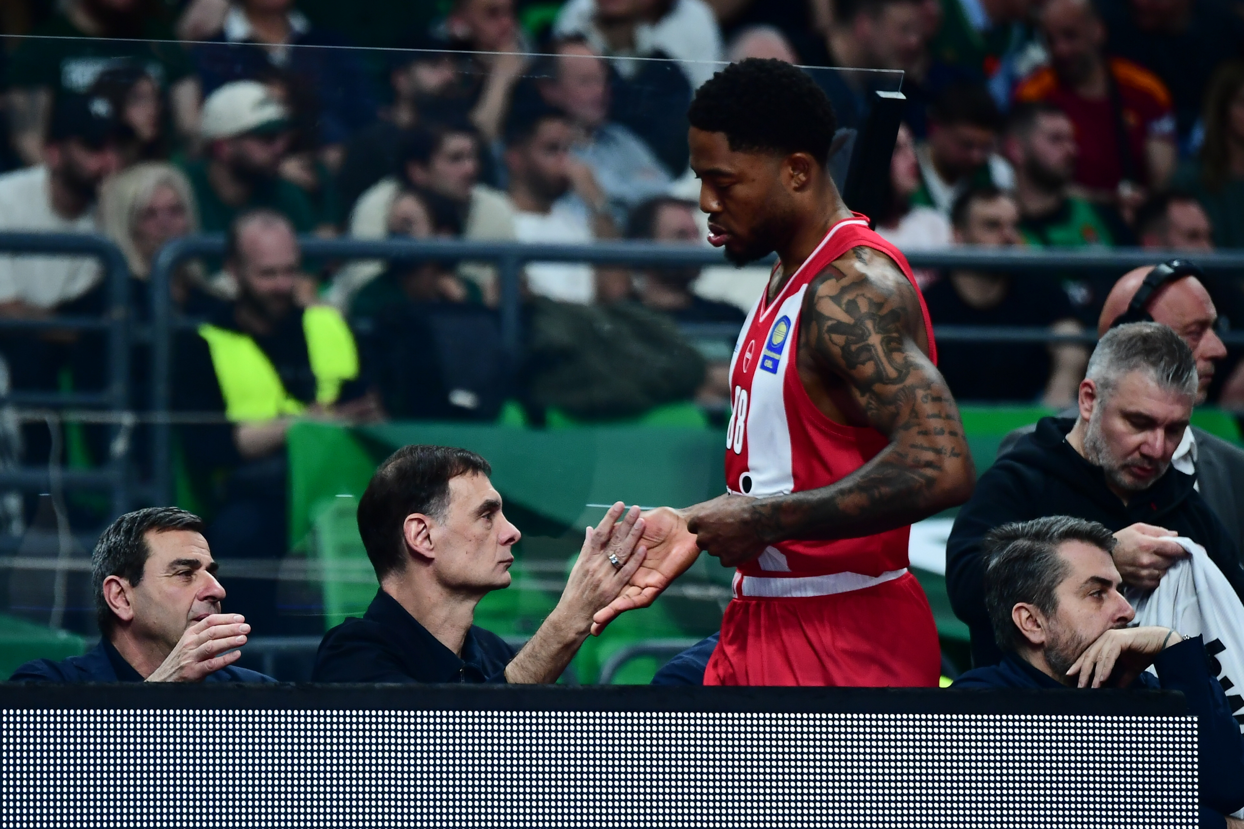 Συγκεκριμένα, ο Ταϊρίκ Τζόουνς αποχώρησε από το παιχνίδι πιάνοντας τη γάμπα του, με την Ερυθρόλευκη ΚΑΕ να ενημερώνει πως θα πήγαινε για εξετάσεις σήμερα (31/3).
