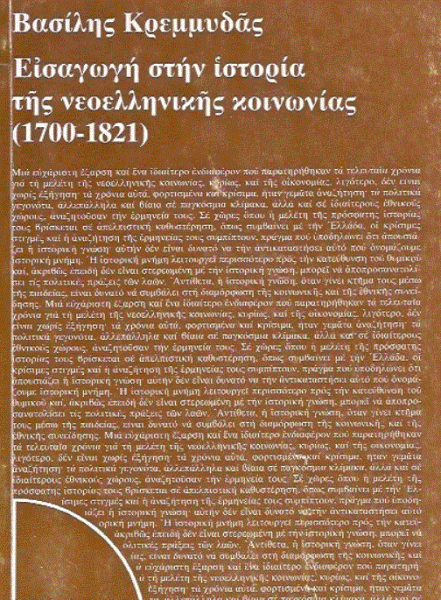 Ο Βασίλης Κρεμμυδάς (1935-2017), διακεκριμένος ιστορικός, πανεπιστημιακός και συγγραφέας, είχε σημαντική συνεισφορά στην εις βάθος κατανόηση των εξουσιαστικών σχέσεων και των κοινωνικοοικονομικών συνθηκών που επικρατούσαν στον ελλαδικό χώρο αρκετές δεκαετίες πριν από την έναρξη αλλά και κατά τη διάρκεια του Αγώνα της Ανεξαρτησίας.