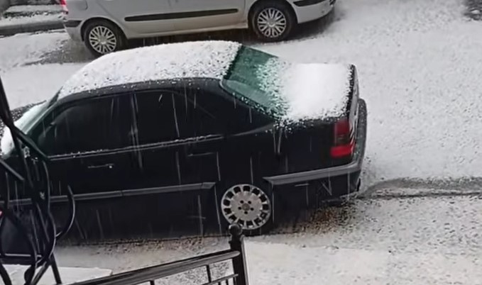 Σφοδρή χαλαζόπτωση έπληξε τον Πολύγυρο Χαλκιδικής, μετατρέποντας τους δρόμους σε λευκό τοπίο, που θύμιζε χειμώνα.