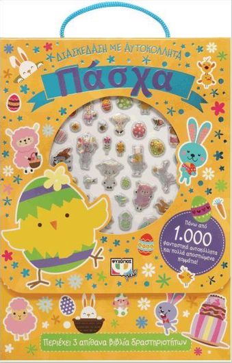 Υποδεχθείτε την άνοιξη και γιορτάστε το Πάσχα με αυτό το απίθανο σετ βιβλίων, που περιλαμβάνει πάνω από 1.000 αυτοκόλλητα, πολλά αποσπώμενα κομμάτια για χειροτεχνίες και διασκεδαστικές δραστηριότητες! Οδηγήστε το προβατάκι έξω από τον λαβύρινθο, στολίστε τα κοτοπουλάκια με απίθανα αυτοκόλλητα, φτιάξτε τη δική σας πασχαλινή γιρλάντα και κουνελο-αυτιά και άλλα πολλά!