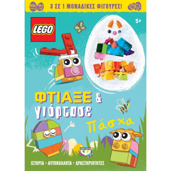 Πάρε μέρος σε ένα διασκεδαστικό και τρελούτσικο πασχαλινό κυνήγι αυγών μέσα σε αυτό το μοναδικό βιβλίο LEGO! Συναρμολόγησε έναν από τους τρεις μοναδικούς χαρακτήρες – το πολύχρωμο πασχαλινό αυγό, την επίμονη κουνελίτσα και το νυσταγμένο πρόβατο. Φτιάξε διάφορα εξαρτήματα για να τους βοηθήσεις να βγουν από τους λαβύρινθους, να λύσουν γρίφους και να κάνουν ποικίλες δραστηριότητες. Επίσης, διάβασε τις περιπέτειές τους στα κόμικς. Με τόσες επιλογές, φέτος το Πάσχα θα περάσεις ατελείωτες ώρες διασκέδασης.