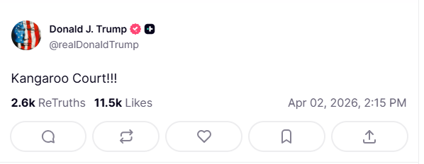 Οι αναρτήσεις δεν περιορίστηκαν στον μουσικό. Ο Τραμπ έστρεψε τα πυρά του και προς το Ανώτατο Δικαστήριο, κάνοντας λόγο για «δικαστήριο-παρωδία», ενώ αναδημοσίευσε επικριτικά δημοσιεύματα για τον Τάκερ Κάρλσον και τον Δημοκρατικό βουλευτή Έρικ Σουόλγουελ.