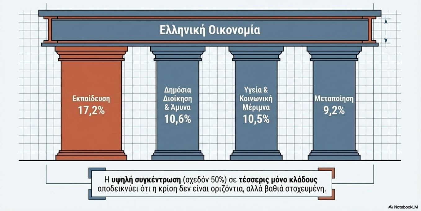 Στη «Δημόσια Διοίκηση και Άμυνα» βλέπουμε το αποτέλεσμα των μαζικών συνταξιοδοτήσεων των προηγούμενων ετών και την ανάγκη για στελέχωση κρίσιμων υπηρεσιών με νέο, ψηφιακά καταρτισμένο δυναμικό.