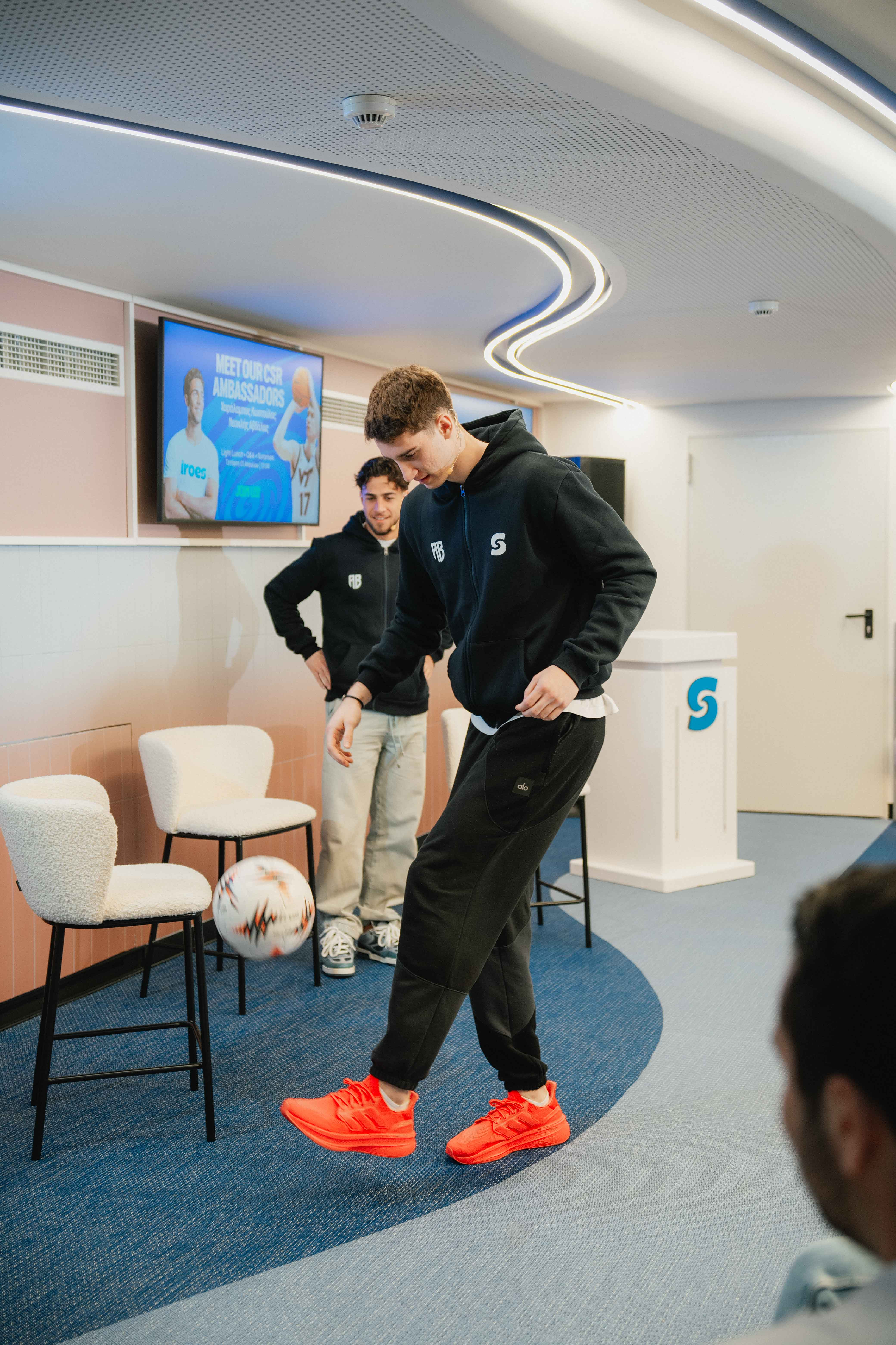 Δύο από τα πιο υποσχόμενα ονόματα του ελληνικού αθλητισμού, ο ποδοσφαιριστής Χαράλαμπος Κωστούλας και ο μπασκετμπολίστας Νεοκλής Αβδάλας, επισκέφθηκαν πρόσφατα τα γραφεία της Stoiximan για ένα event με τους εργαζομένους της εταιρείας κι έφεραν μαζί τους ακριβώς ό,τι περιμένεις από δύο next big things: ενέργεια, ιστορίες και μια… αναπάντεχη αντιστροφή ρόλων.