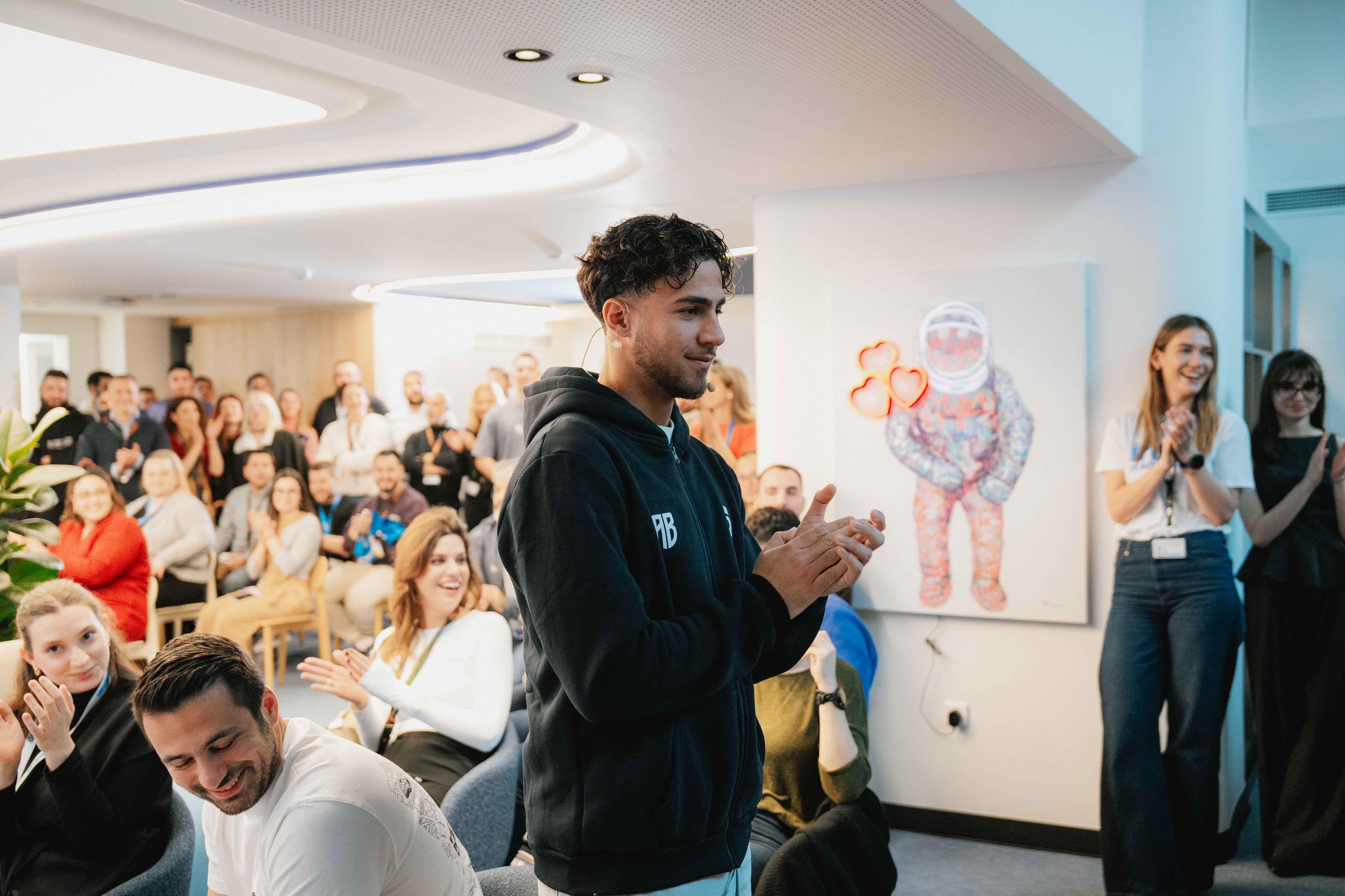 «Για εμάς, τέτοιες στιγμές δεν είναι η εξαίρεση», έγραψε η Stoiximan για την επίσκεψη. Κι έχει δίκιο. Η εταιρεία που έχει χτίσει το πρόγραμμα εταιρικής κοινωνικής υπευθυνότητας Iroes γύρω από την ιδέα ότι οι ήρωες βρίσκονται παντού – στα γήπεδα αλλά και στην καθημερινότητα – δεν θα μπορούσε να φέρει στα γραφεία της καλύτερα παραδείγματα από δύο νέους που αποδεικνύουν ακριβώς αυτό.