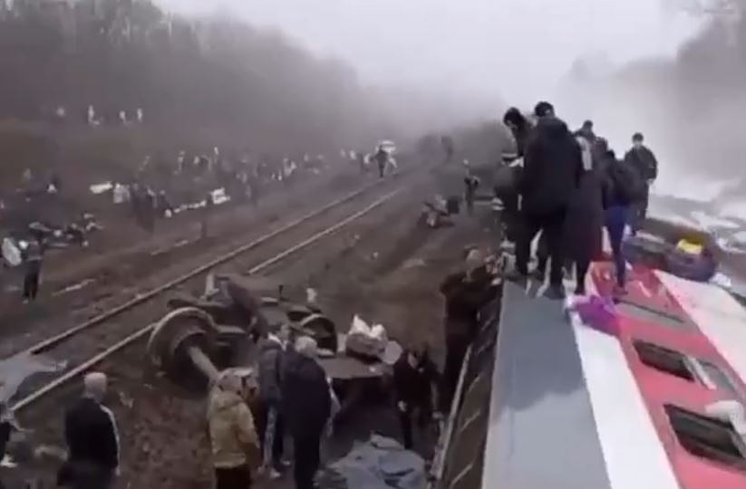 Σε πλάνα που μεταδόθηκαν από ρωσικό τηλεοπτικό δίκτυο, φαίνονται τουλάχιστον δύο βαγόνια του τρένου που βρίσκονται πεσμένα στο πλάι των σιδηροδρομικών γραμμών, ενώ υπάρχει πυκνή ομίχλη