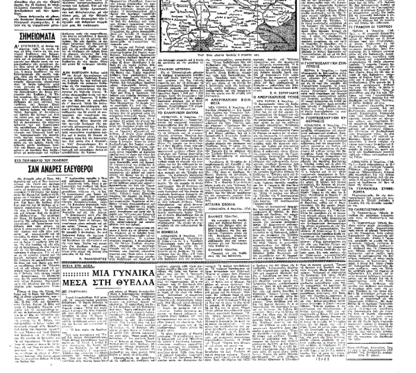 Είδαμε το λύκο της Ρώμης. Να δούμε και το θηρίο του Βερολίνου. Μας το είπαν μηχανοκίνητο, κεραυνοβόλο, καταπληκτικό. Ανοίγει, λέει, το ένα πόδι και βρίσκεται στην Πράγα, ανοίγει το άλλο και πατά τη Βαρσοβία. Πηγαίνει στη Δανία για το μεσημεριάτικο μεζέ του, το απόγευμα τού σερβίρουν για ορ ντ’ εβρ την Ολλανδία, την επομένη σπρώχνει με τη μύτη της μπότας του το Βέλγιο που του εμποδίζει το δρόμο, υψώνει τον αγκυλωτό σταυρό στη θριαμβευτική αψίδα του Παρισιού, γευματίζει στα Ηλύσια και τώρα έρχεται στα Βαλκάνια για τα επιδόρπιά του. Θα κινούσε το δαχτυλάκι και θα του προσφέραμε. Το δαχτυλάκι όμως το κίνησε κι’ ακόμη δεν εστείλαμε γην και ύδωρ εις σημείον της υποταγής μας. Οι περίπατοι που τον συνήθισαν να κάμη σ’ άλλες ακτίνες δράσεως, εδώ έγιναν μάχες που του στοιχίζουν άφθονο το αίμα των δούλων του.