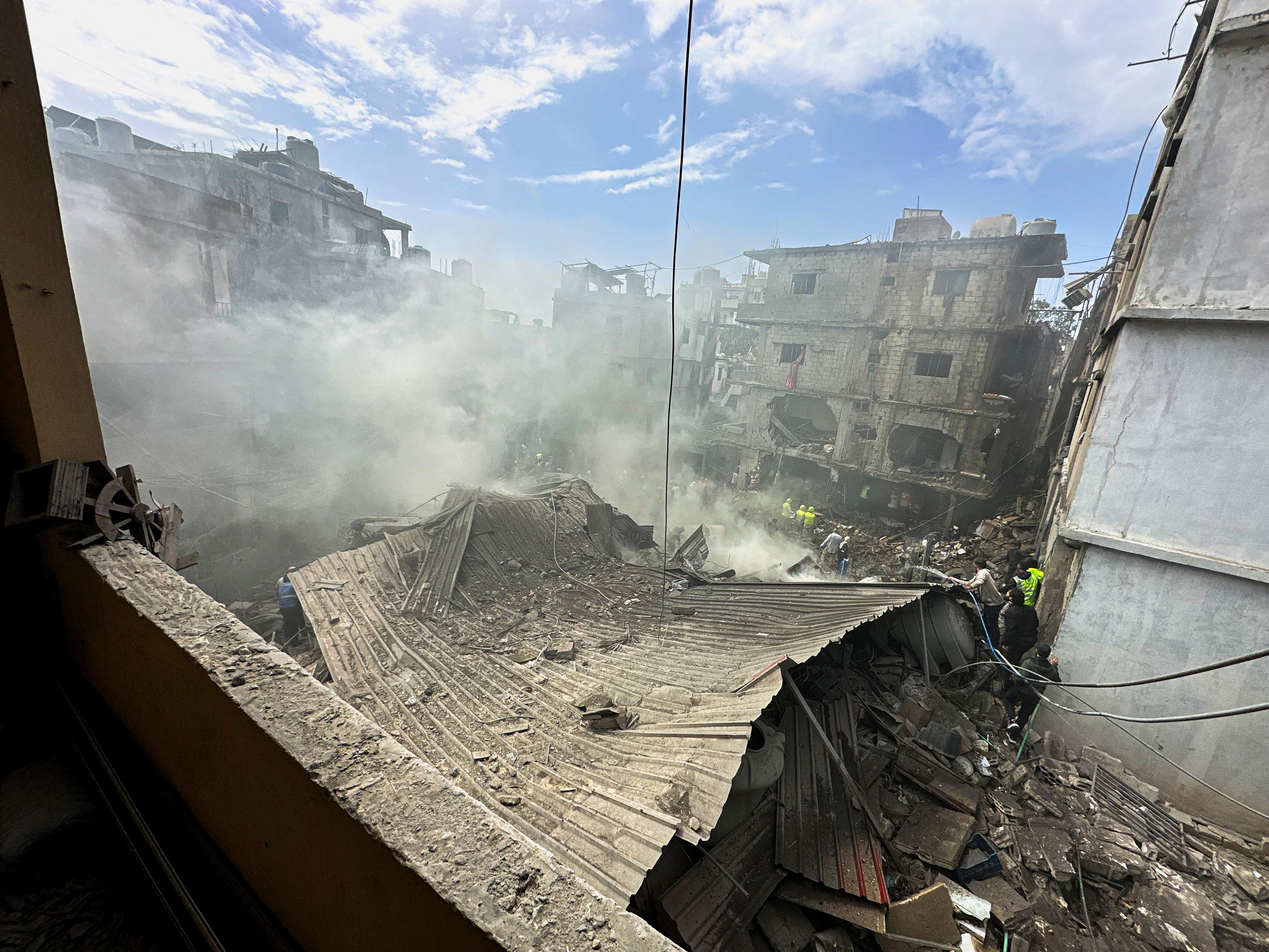 Γενική άποψη από το σημείο ισραηλινής επιδρομής, εν μέσω κλιμάκωσης των συγκρούσεων μεταξύ Ισραήλ και Χεζμπολά, ενώ συνεχίζεται η σύγκρουση ΗΠΑ–Ισραήλ με το Ιράν, στην περιοχή Τζνάχ της Βηρυτού, στον Λίβανο, 5 Απριλίου 2026. REUTERS/Stringer