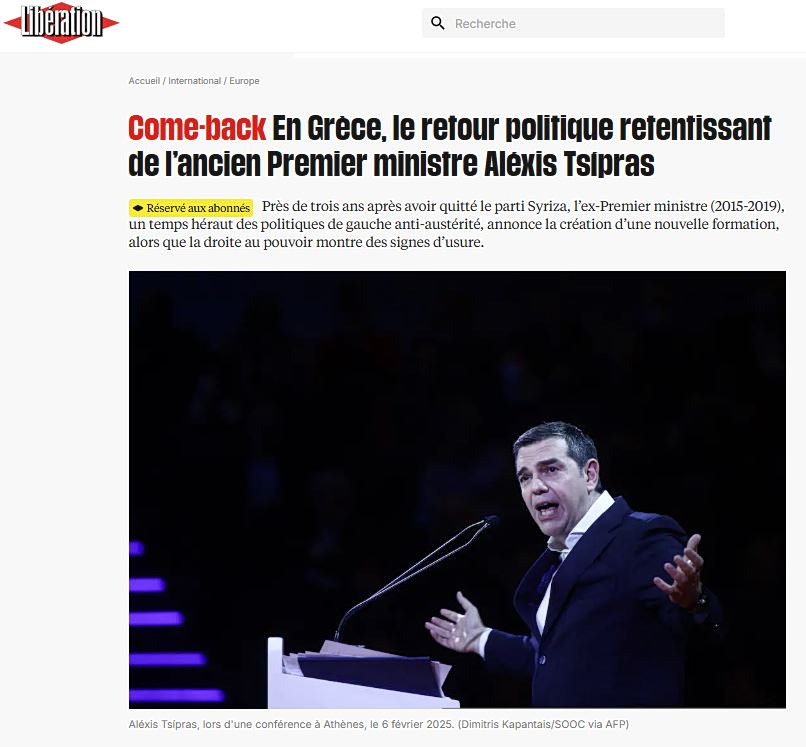 Η Libération σημειώνει ότι από τον Ιανουάριο του 2025, με τη συνέντευξή του στη γαλλική εφημερίδα, αλλά και την έκδοση του βιβλίου του, «Ιθάκη», ο πρώην πρωθυπουργός «υπερασπίστηκε το ιστορικό του και επιβεβαίωσε τις αριστερές του πεποιθήσεις». Και τονίζει ότι στις παρουσιάσεις του βιβλίου του, και με το Ινστιτούτο Αλέξης Τσίπρας «συλλέγει ιδέες».
