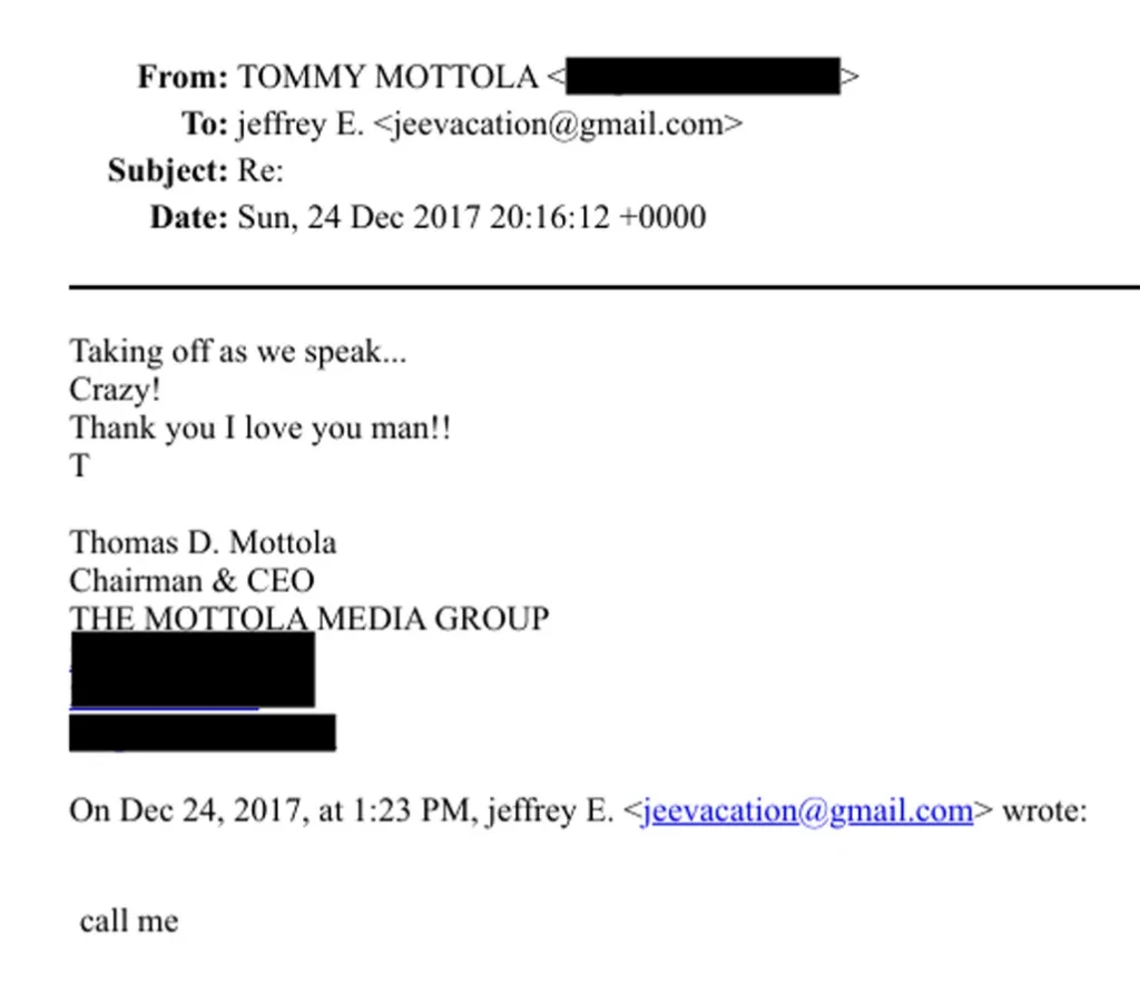Η δημοσιοποίηση των αρχείων Έπσταϊν φέρνει στο φως emails και SMS με τον επί χρόνια μουσικό πατραγωγό της Sony Music, Τόμι Μοτόλα, αποκαλύπτοντας τη διάρκεια και τη φύση της σχέσης τους