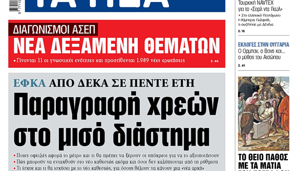 Στα «ΝΕΑ» της Τετάρτης: Παραγραφή χρεών στο μισό διάστημα