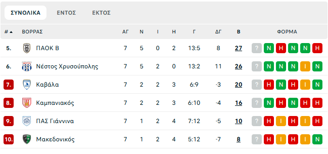 Στην κορυφή της κατάταξης των play out παραμένει ο ΠΑΟΚ Β’, που νίκησε 2-1 με ανατροπή στην Καλαμαριά τον ΠΑΣ Γιάννινα, ο οποίος έπαιζε με δέκα παίκτες από το 27′, λόγω αποβολής του Ναούμη. Παρά το αριθμητικό μειονέκτημα, ο «Αγιαξ της Ηπείρου» προηγήθηκε στο 33′ με τον Φιόγκμπε, αλλά ο Ραϊχανί (64′) και ο Καλαϊτσίδης (89′) «υπέγραψαν» την ανατροπή για τον «δικέφαλο του βορρά», που βρίσκεται «αγκαλιά» με την παραμονή.
