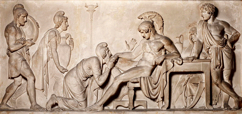 Στη φωτογραφία του παρόντος άρθρου, ο Πρίαμος εκλιπαρεί γονυπετής τον Αχιλλέα να του παραδώσει τη σορό του Έκτορος (έργο του δανού γλύπτη Bertel Thorvaldsen, 1815).