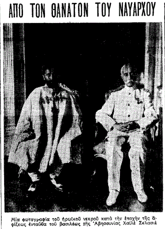 Οι σπάνιες διηγήσεις του ήτανε χάρμα. Μια μέρα, στην Ύδρα, που με είχε κρατήση στο πρόγευμα, μου διηγήθη μερικά από την επίσημη επίσκεψι (σ.σ. τον Αύγουστο του 1924) του Ρας-Τάφαρι (σ.σ. ο τότε αντιβασιλέας και μετέπειτα αυτοκράτορας της Αιθιοπίας/Αβησσυνίας, Χαϊλέ Σελασιέ, 1892-1975) εδώ: