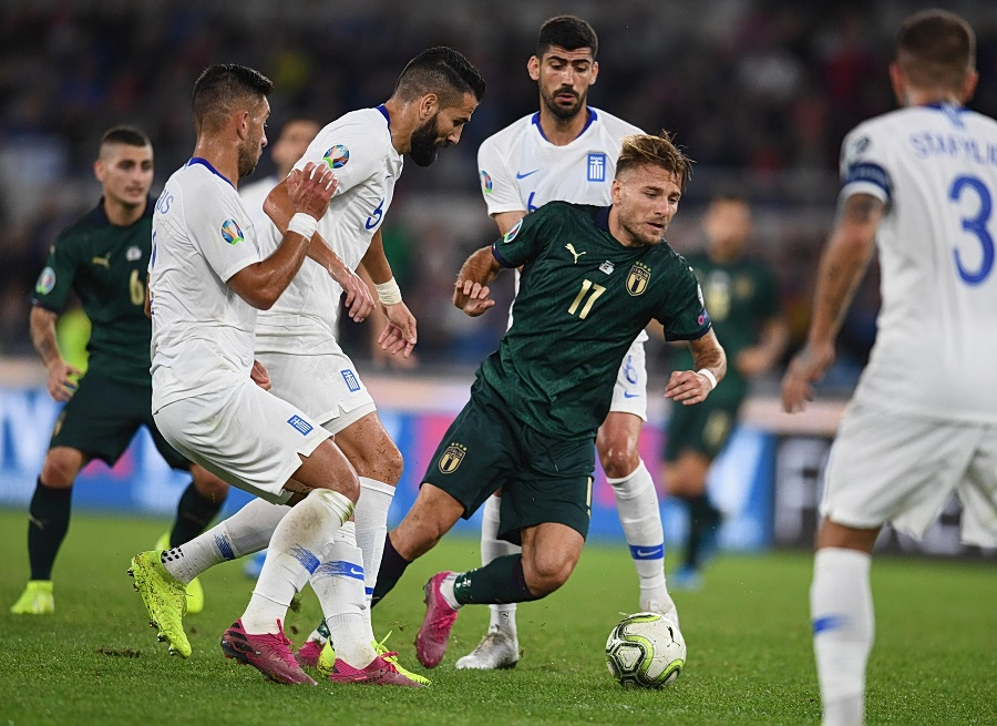 Ο Τσίρο Ιμόμπιλε εν δράσει στον τελευταίο αγώνα μεταξύ Ιταλίας και Ελλάδας που διεξήχθη τον Οκτώβριο του 2019 στο Στάδιο Ολίμπικο της Ρώμης