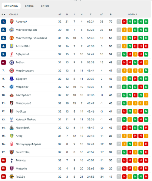 19/4 18:30 Μάντσεστερ Σίτι – Άρσεναλ