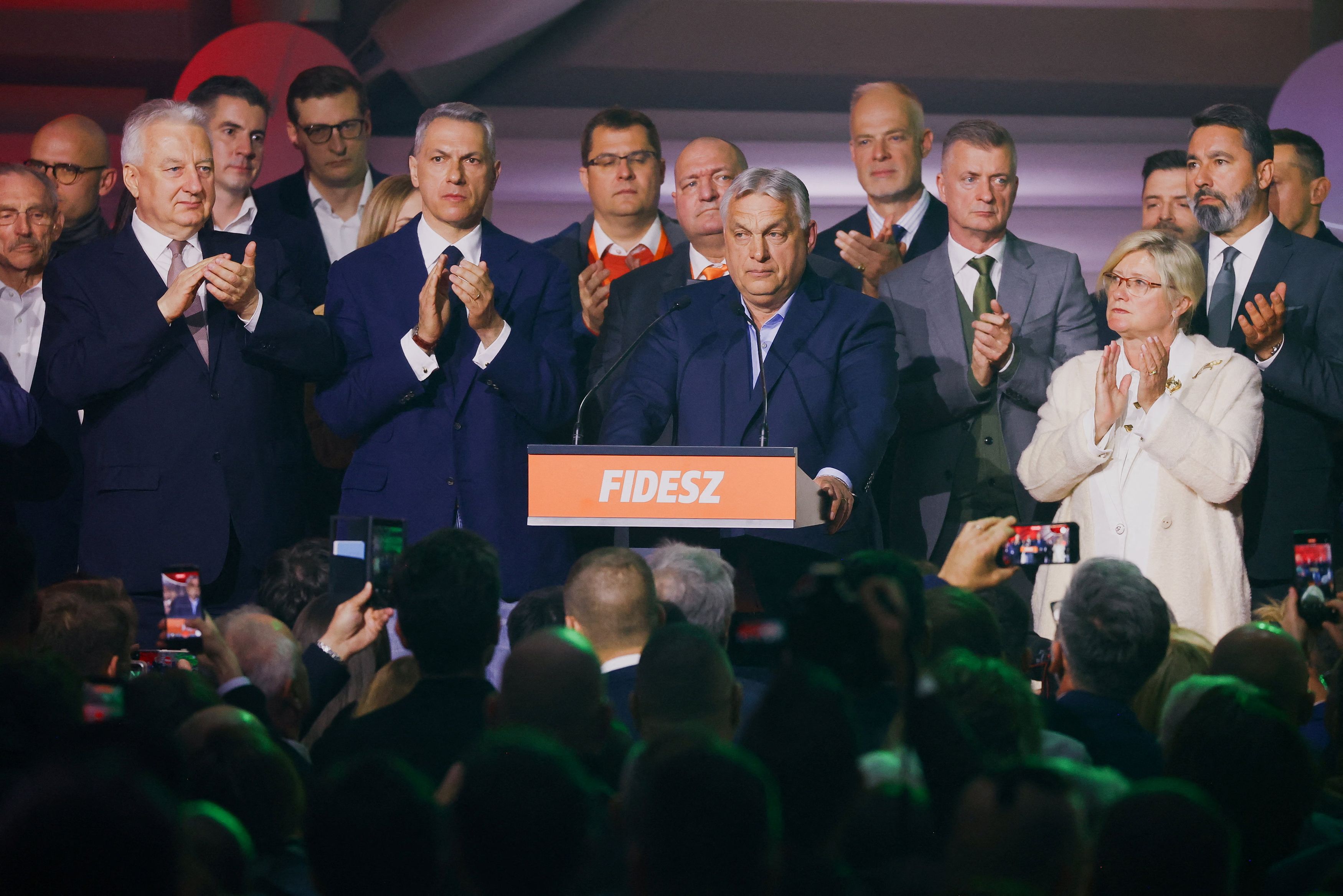 Ο Βίκτορ Όρμπαν απευθύνεται στους ψηφοφόρους του, μετά τα πρώτα αποτελέσματα / REUTERS/Bernadett Szabo