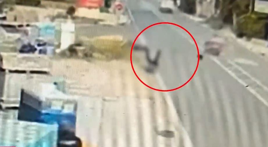 Η σύγκρουση ήταν ιδιαίτερα σφοδρή, με αποτέλεσμα ο αναβάτης να εκτιναχθεί στο οδόστρωμα, ενώ η μηχανή υπέστη σοβαρές ζημιές.