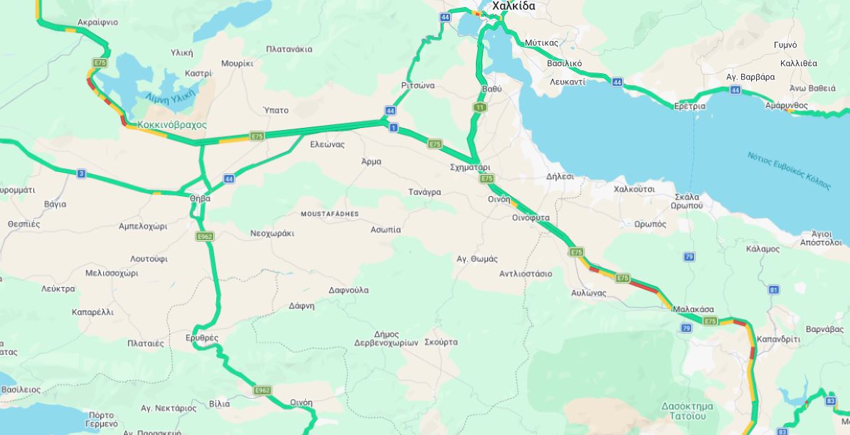 Ειδικότερα, καταγράφονται ουρές λίγο πριν τα διόδια Θήβας, στο ύψος της Υλίκης και στο ύψος από τον Αυλώνα μέχρι τη Μαλακάσα.