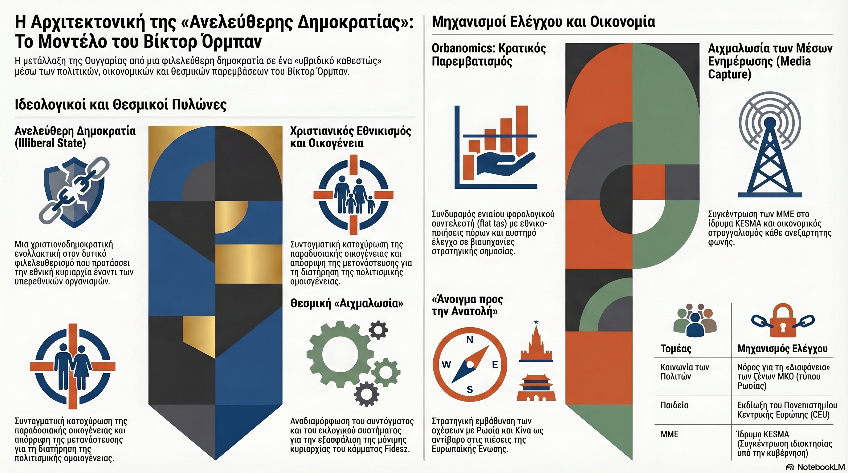 Απόρριψη του Φιλελευθερισμού: Ο Όρμπαν έχει δηλώσει ρητά ότι οικοδομεί ένα κράτος που δεν είναι φιλελεύθερο, αντλώντας έμπνευση από μοντέλα χωρών όπως η Τουρκία και η Ρωσία.